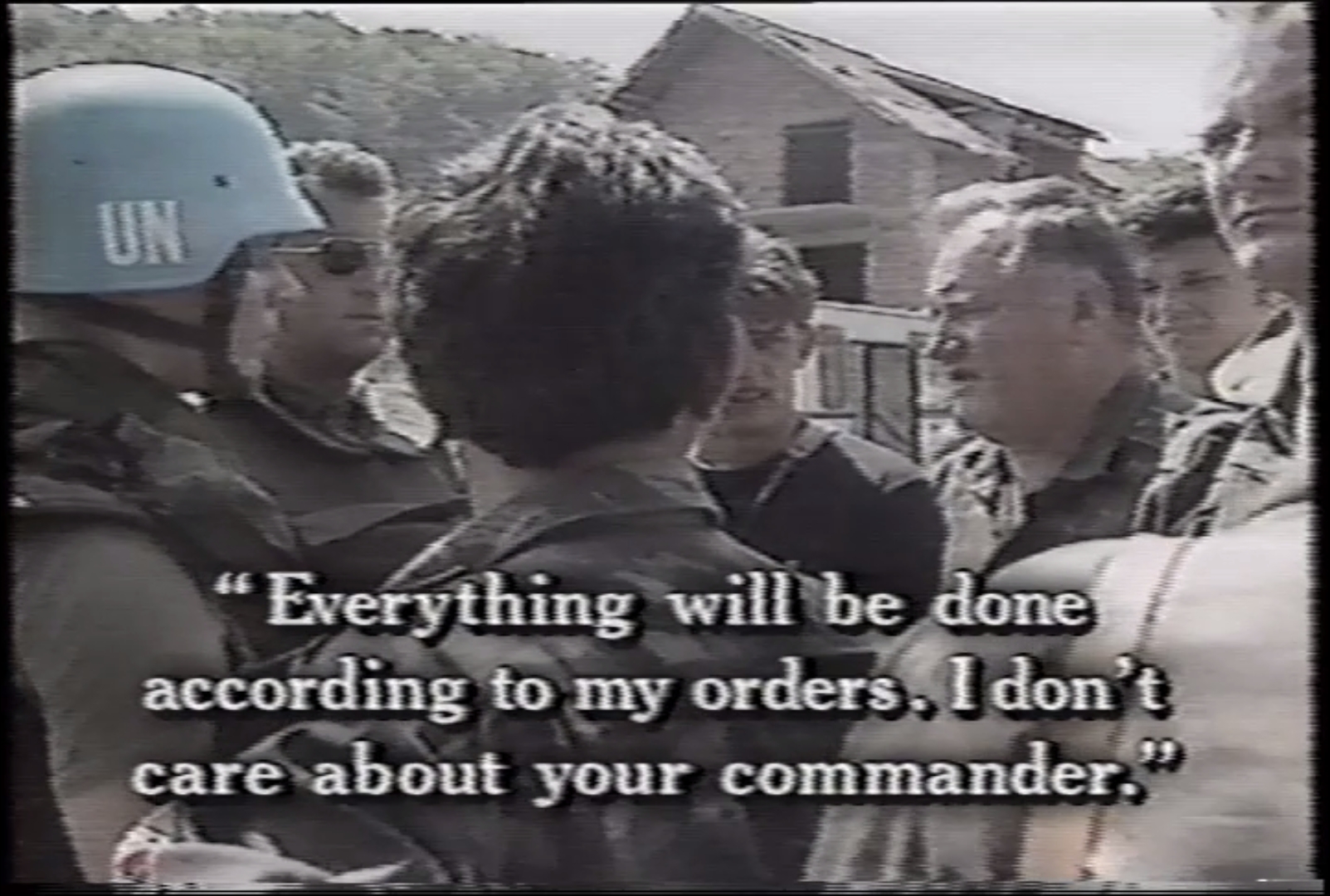 Ratko Mladić talking to disarmed UN peacekeepers.