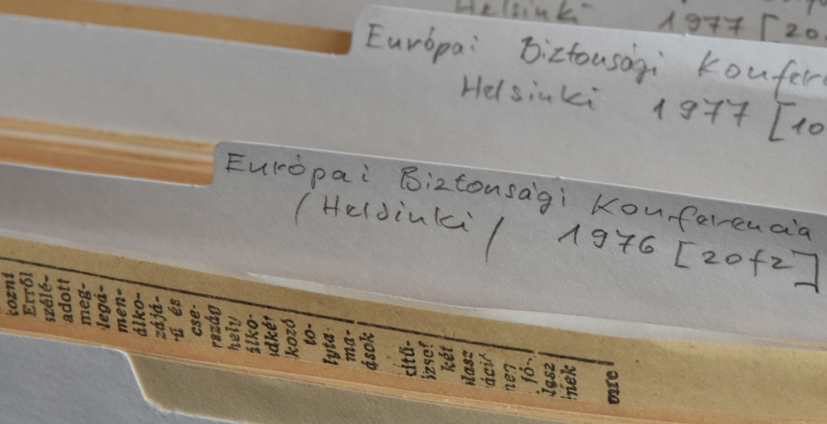 The Research Institute of RFE in Munich compiled thematic collections, so-called Subject Files related to specific issues, comprising press clippings, news agency releases, transcripts of state radio broadcasts. The Subject Files on the Helsinki conference, spanning 10 folders, reflect the public Hungarian stance on the Helsinki Accords from its signing until 1987. This can be expanded by the state security documents included in the László Varga Collection, like the task plan and the proposals drafted at the Ministry of Interior, or the regulations issued by the government. These documents provide a glimpse into how the Hungarian State interpreted the Helsinki Final Act, and especially how it was seen both as an opportunity and a threat.